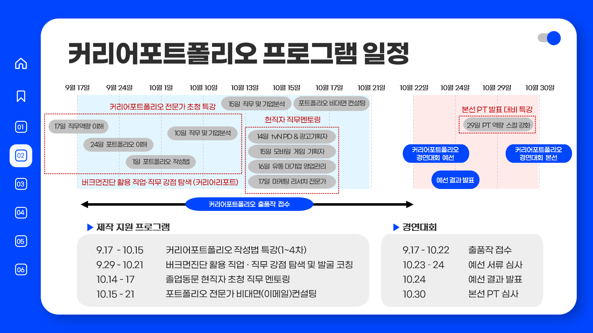 fnctId=bbs,fnctNo=1788 글번호 935736 [새글] 2025학년도 커리어포트폴리오 경연대회 전체 프로그램 일정 작성일 2025.09.25 수정일 2025.09.25 작성자 양준성 조회수 82 첨부파일 첨부파일이(가) 없습니다.